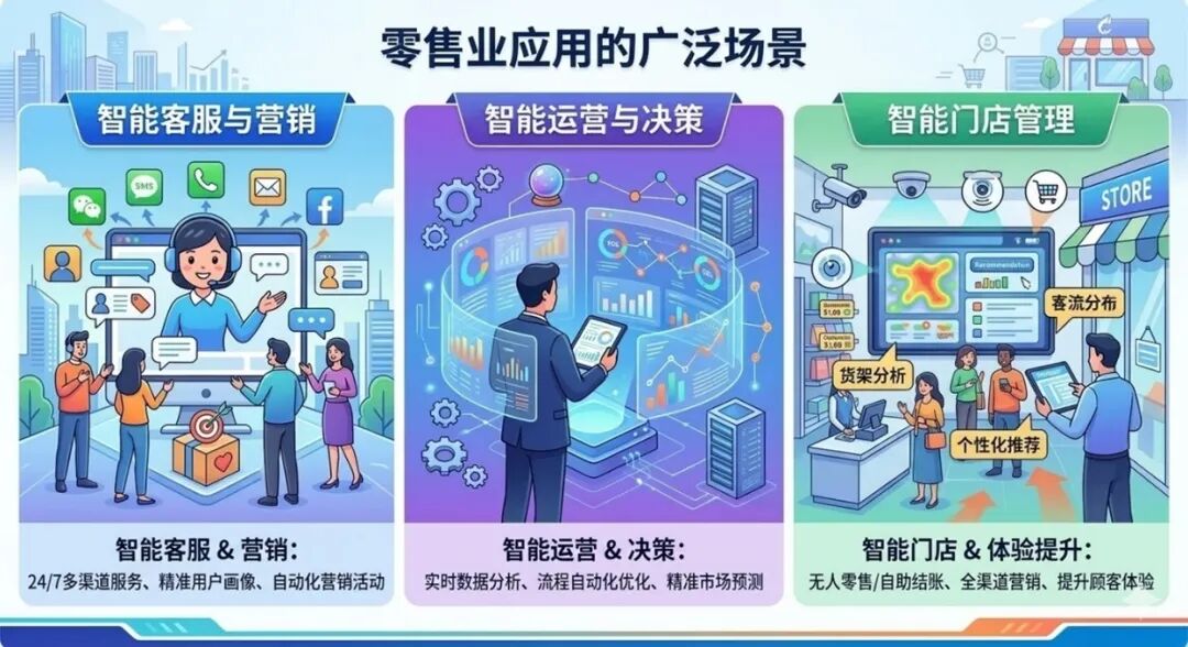 智能运营与决策:对接 POS 系统、库存管理系统(WMS)和供应链管理系统,实现销售数据实时分析、库存自动预警、补货计划生成和促销效果评估。