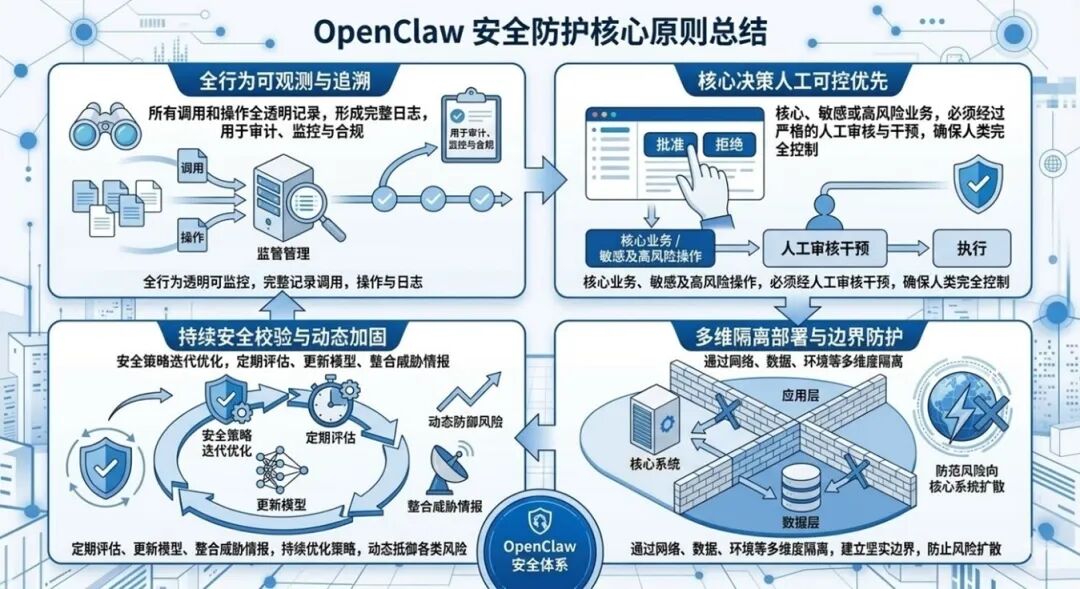 基于对 OpenClaw 安全特性的理解,企业在规划和实施 OpenClaw 安全时,应遵循以下原则: