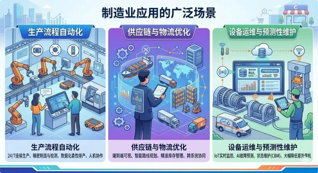 设备运维与预测性维护:通过分析设备传感器数据,预测设备故障,自动生成维护工单并派发给维修人员。