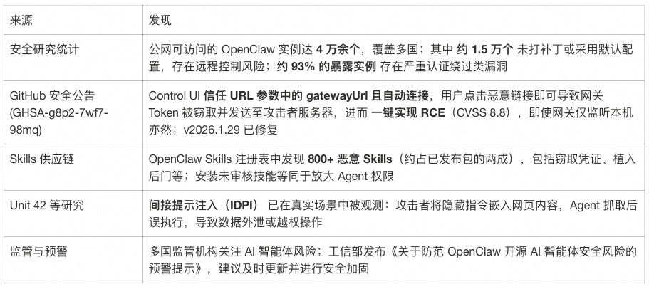 2026 年初,多家安全厂商集中披露了一批 AI Agent 相关漏洞和事件:
