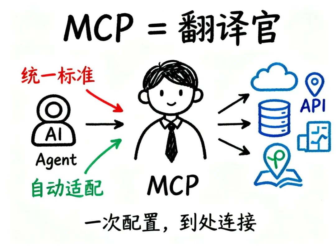 MCP就像是给AI装上了"即插即用"的接口——想让它访问什么,配置一个MCP就行。