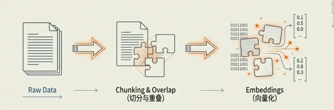 - 重叠(Overlap): 在切分时,通常会保留一定的文字重叠。这能防止上下文在切分处丢失,从而大幅提升检索的准确性。