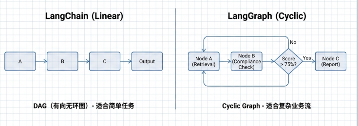 - 决策:**LangGraph 根据当前状态**判断:是直接回答,还是需要循环修正?