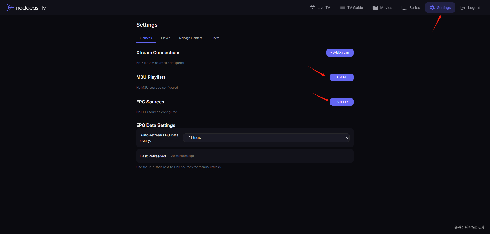 7000+频道)进行了优化,支持虚拟滚动和批量渲染。 - ⚙️ 管理功能: