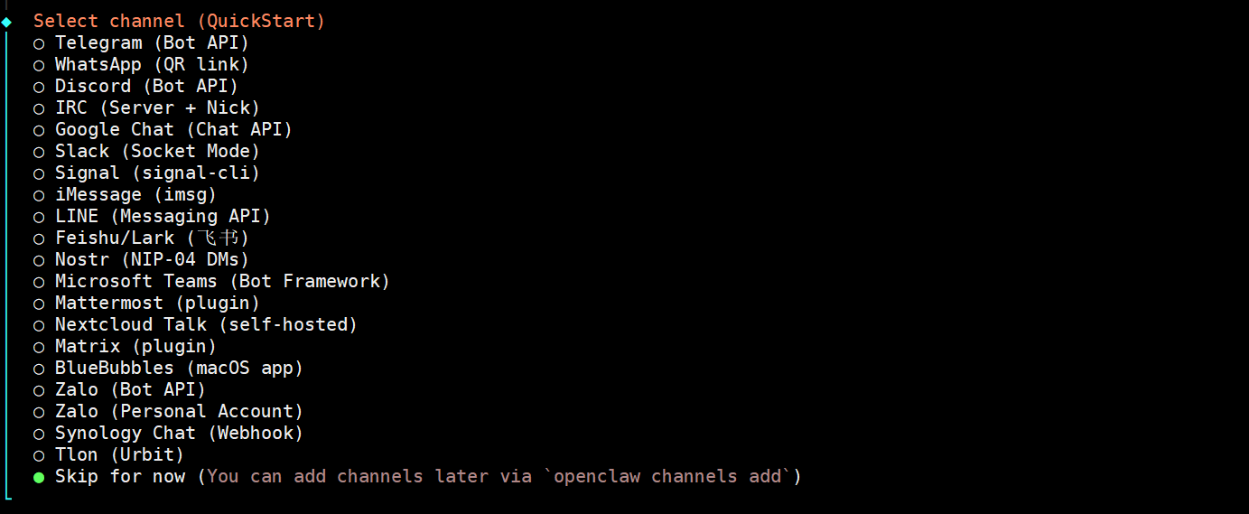 先不配置channel,直接跳过