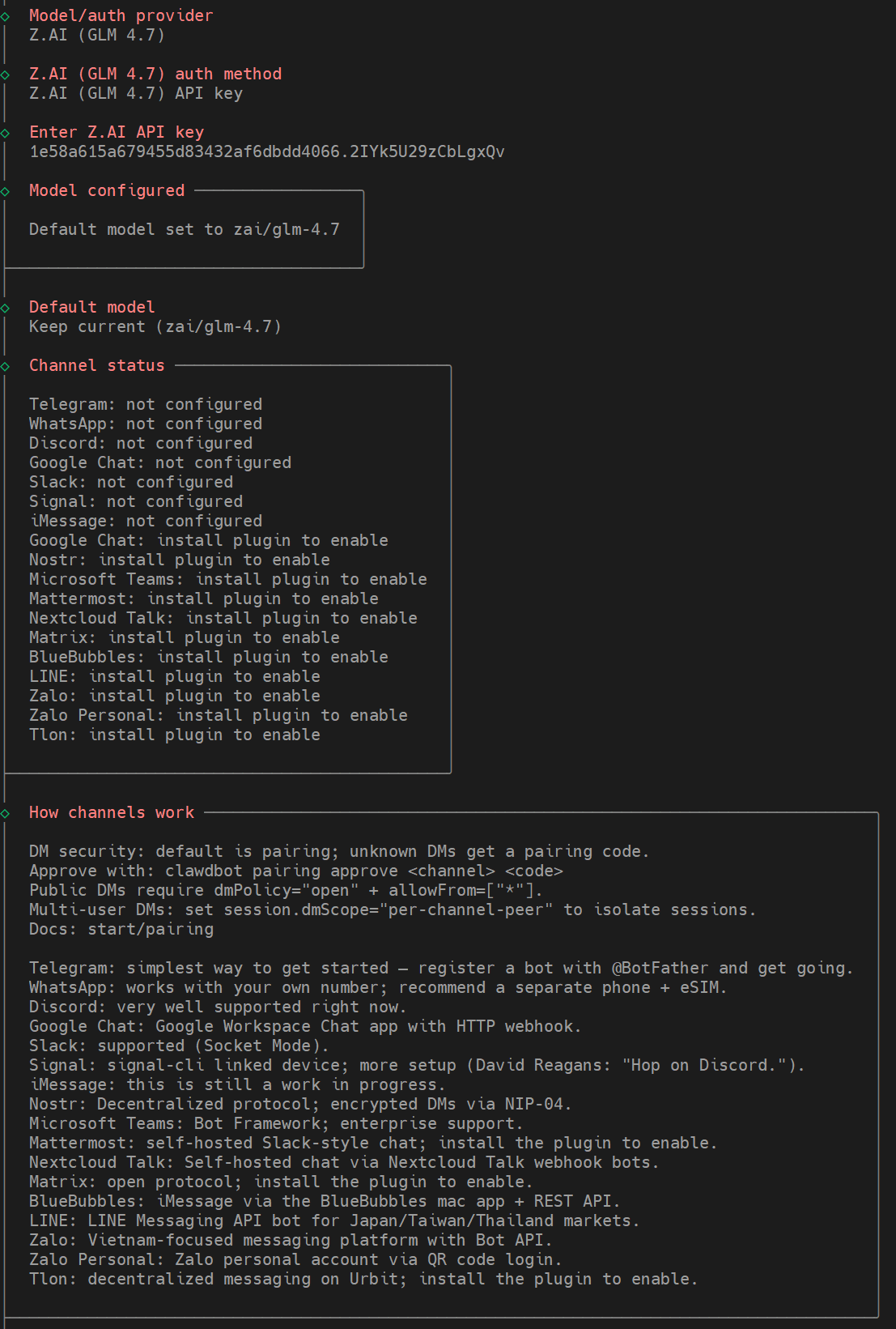 没有选imessage,选了。选择智谱Z AI模型。选择开源的mm 聊天。