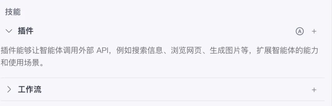 可以添加插件,今天简单的智能体我们先不添加。例如你需要查询天气,那就用添加天气的API接口(如墨迹天气),查询航班情况就要添加查询航班的API(如航旅纵横)等,注意,这个涉及到收费,有的每次调用都扣钱,别轻举妄动。