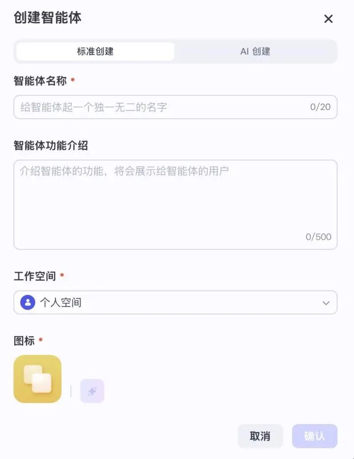 点击创建后会要求填写智能体一些基本信息。