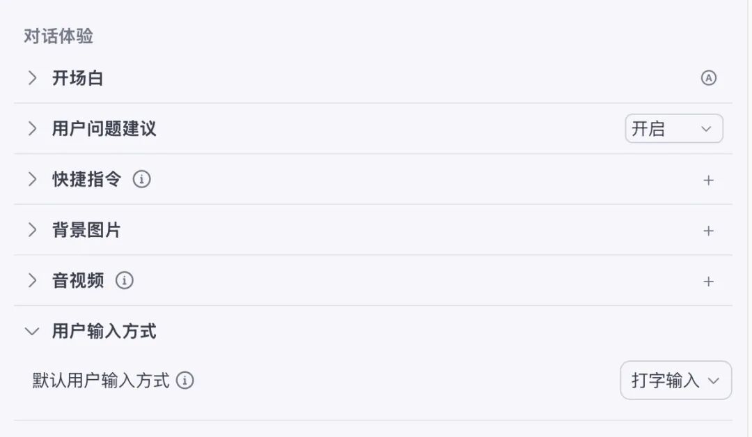 最后是关于优化对话体验的一些功能,比如智能体在对话首页就展示一些开场白,引导你提问等。