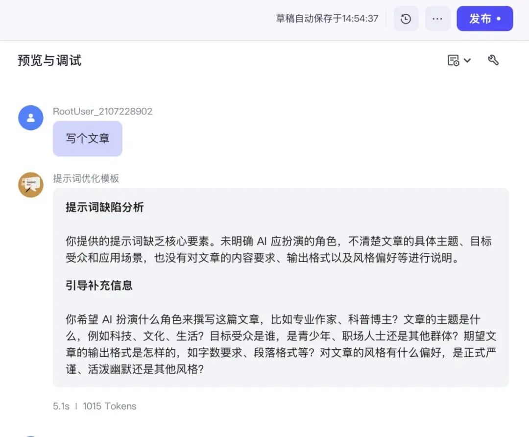 如果调试过程中发现问题,你可以重新去优化智能体的人设和限定。