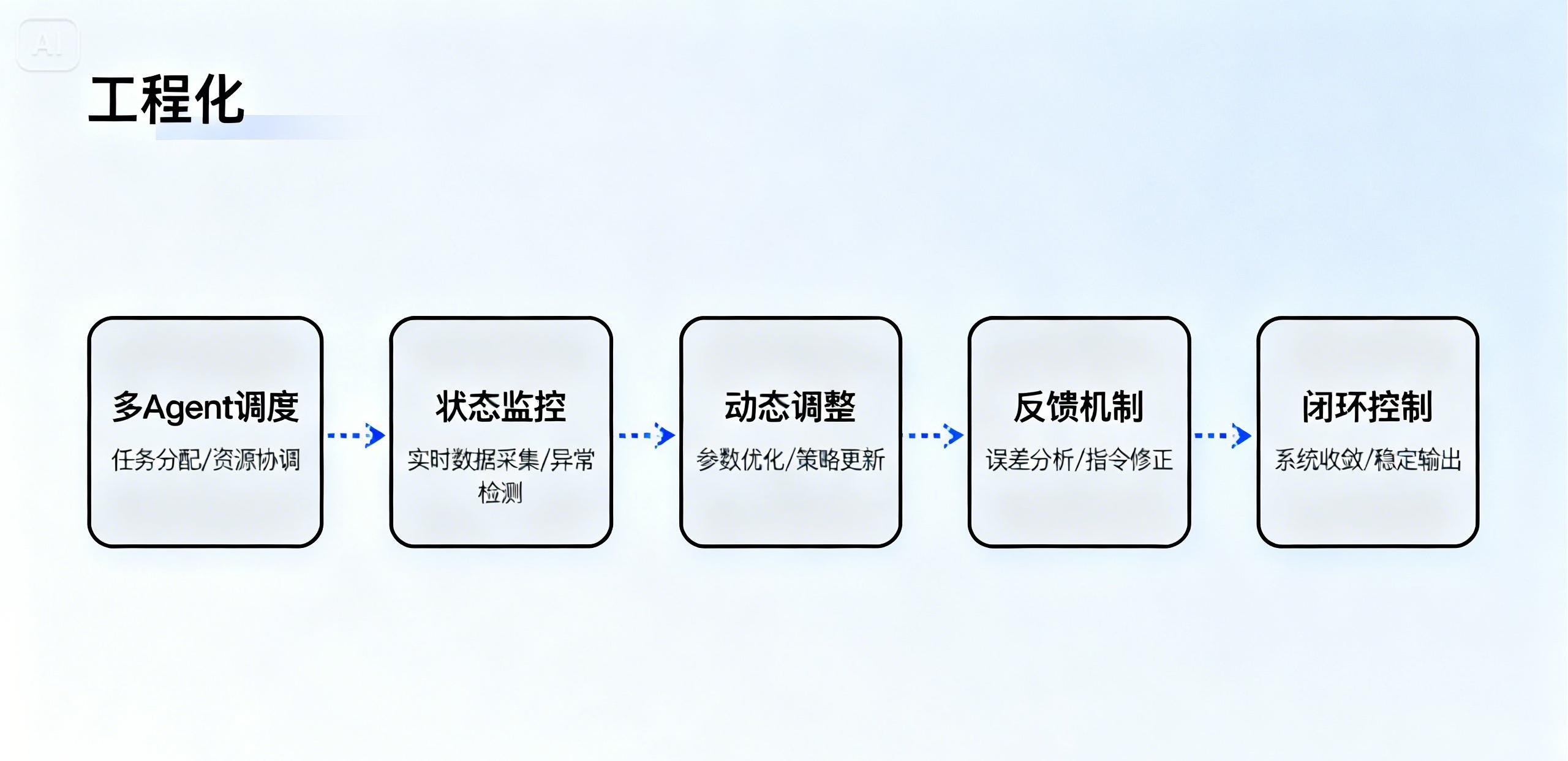 闭环机制:通过状态与结果反馈持续修正策略与调度参数,抑制复杂系统失控。
