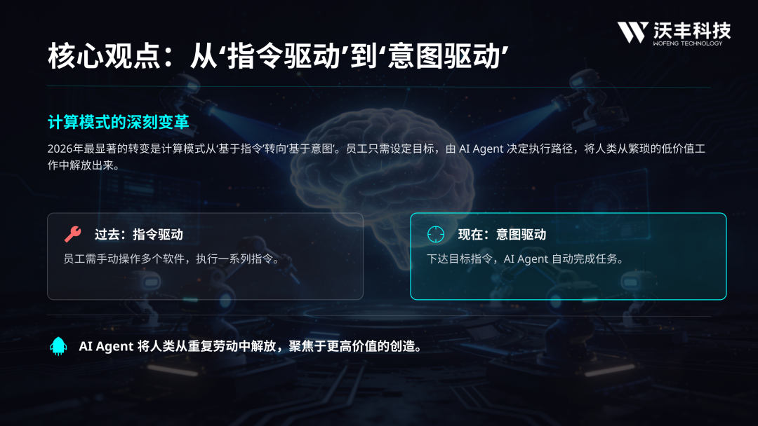 其一,全员 Agent 化实现从 “指令驱动” 到 “意图驱动” 的转变,员工只需设定目标,AI Agent 即可自动规划执行路径,解放重复劳动。数据显示超半数企业已将其投入生产,核心应用于产品创新、客户服务等场景,如智能坐席助手可实现通话转写、话术推荐等功能,助力某头部 AI 云服务厂商将平均处理时长缩短 20% 以上。