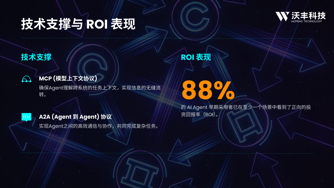 其二,业务流 Agent 化打破 “业务孤岛”,通过 MCP 和 A2A 协议构建 “数字装配线”,实现跨系统数据无缝流转与端到端流程自动化。88% 的早期采用者已收获正向 ROI,自动化工单与全渠道协同方案可统一处理多渠道请求,打通 ERP、CRM 等后端系统,提升跨部门协作效率。
