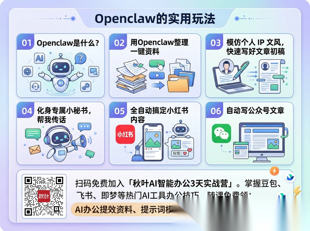 我们秋叶团队的小伙伴早早就把它部署到工位,养了几只专属「龙虾员工」,用它整理资料、撰写书稿、写小红书笔记、做视频…… 至少解锁了十几种玩法,