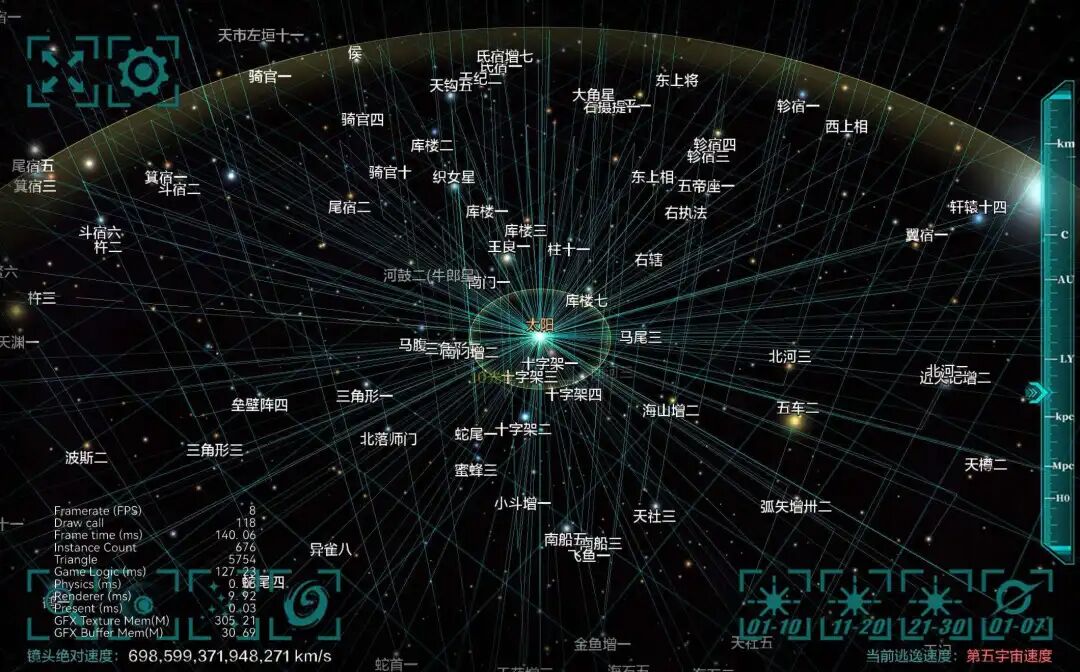 游戏内存在数千的星球,需要每帧根据他们的星系和当前观察者为之决定这些星球是否渲染,和他们的 Label 透明度。