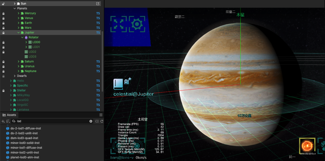 基于原有的 LOD 策略, 在基础上针对手机做了更激进的面数和 Shader 优化,再保证画质的情况下,只有近距离观察星体时候始终最高档。