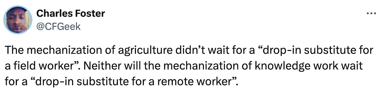 5. 这只是一个更大趋势的缩影:AI Agent 正在改变工作的本质。有些工作会变得更高效,有些会消失,有些新工作会冒出来。有些会变得更有趣,因为 AI 把烦人的部分给自动化了;有些则会变得更有压力,因为 AI 把轻松或有成就感的部分给替掉了。这篇文章不打算展开探讨对就业市场整体的冲击,但有一点值得强调:变化的形式会非常多样,而且往往难以预料。