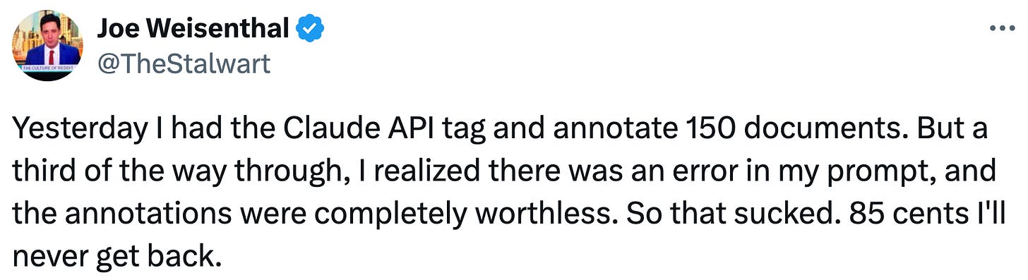 24. 常有人说,AI 工具就算不可靠也有用,因为检查 AI 的输出比自己做要容易。这话言过其实了。有时候做一件事远比验证它要容易得多。比如一张大型电子表格,可能几分钟就能靠重复公式和自动填充搞好。但让别人逐一检查那 1000 个单元格是否都填对了,可能要花更长时间。出于同样的原因,有些工作就是不适合交给 Agent。
