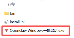 打开解压后的 Openclaw-win 文件夹,双击「OpenClaw Windows 一键启动.exe」(红色龙虾图标)。
