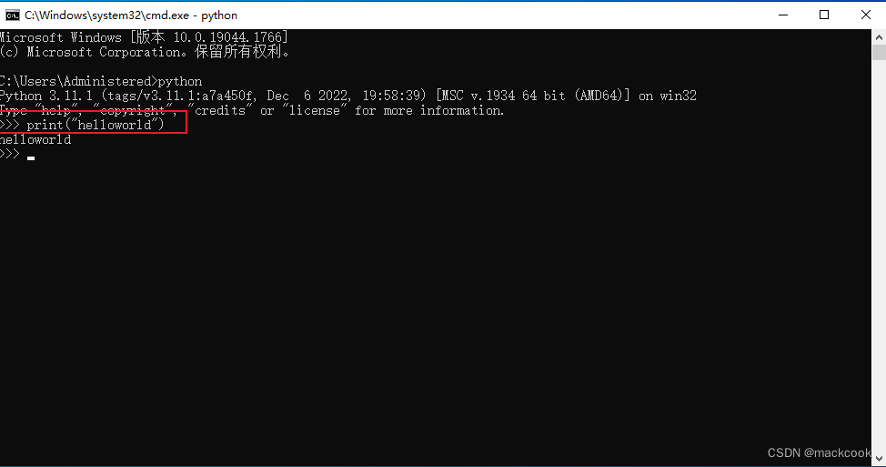 8.输入Python,显示出Python3.11.1等提示信息。