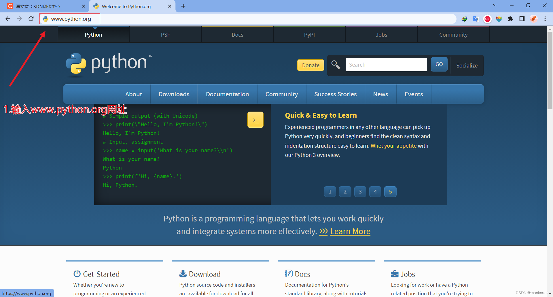 1.在浏览器中,输入Python的官网地址:www.python.org