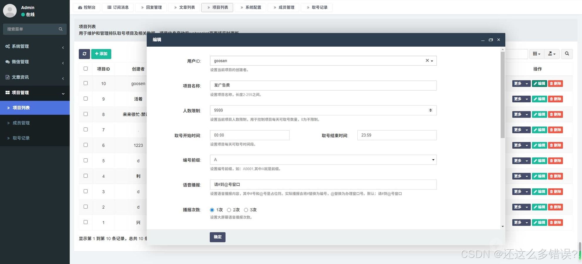 🔧 个性化配置 时间、人数、提醒...你的排队你做主!⏰ 人数限制、语音提醒次数、是否允许跳号、是否需要填写信息、到号提醒...统统可以调!