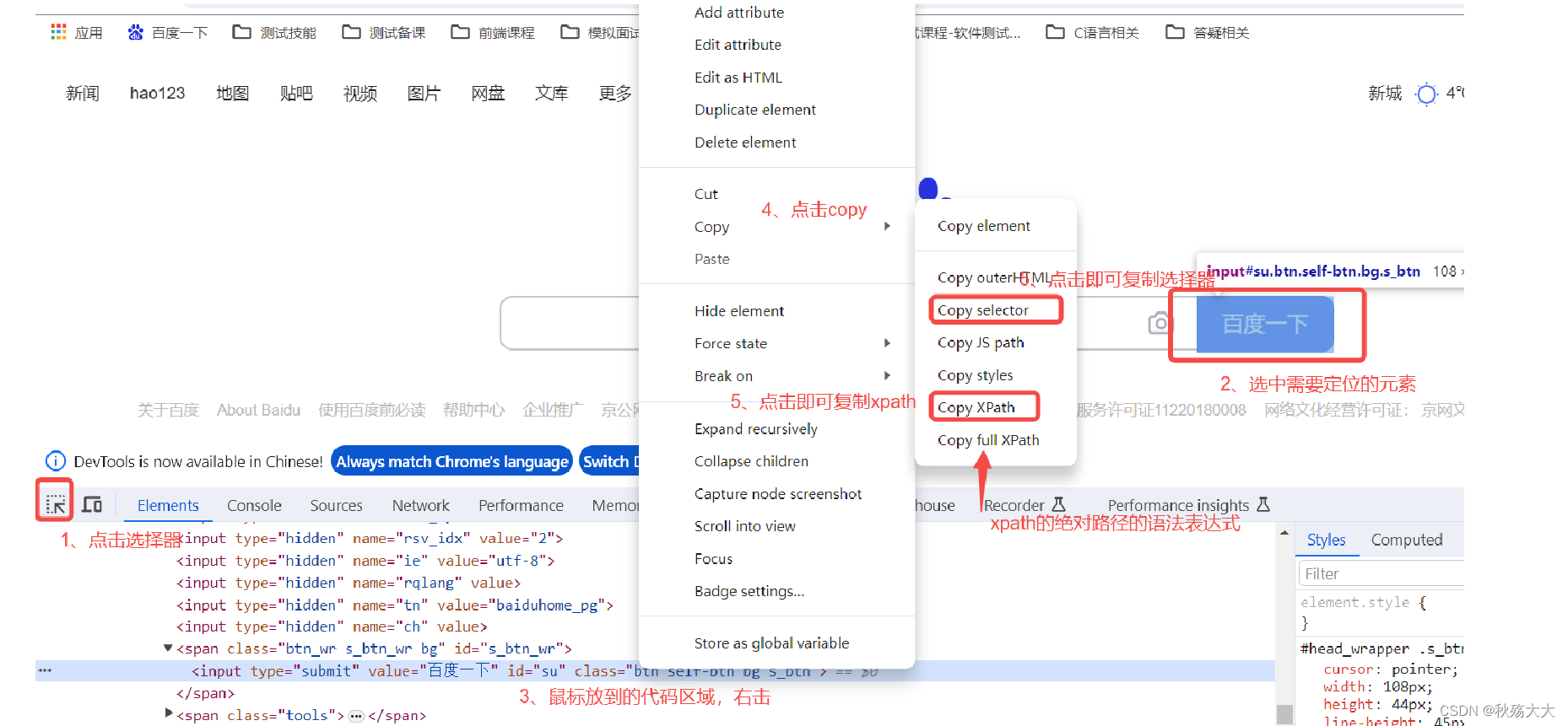 假如我们进入百度主页想要拿到“百度一下”这四个字 我们就可以用