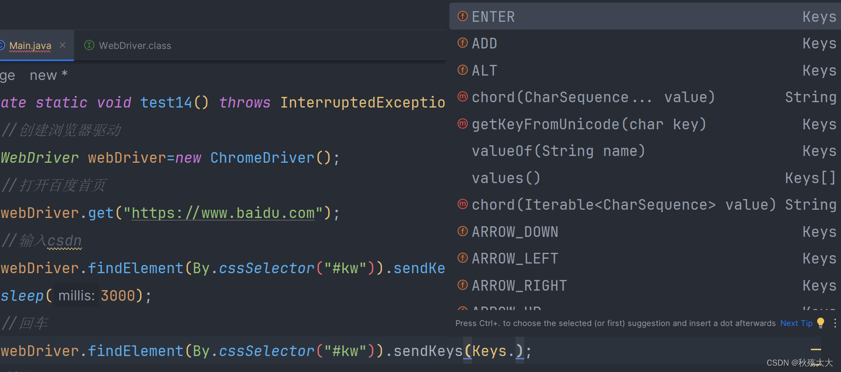 webDriver.findElement(By.cssSelector("#kw")).sendKeys("NBA");