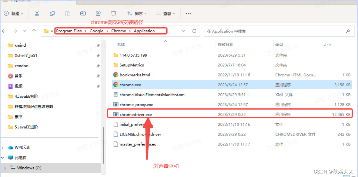 解压下载好的驱动压缩包,将下载好的chromedriver.exe放到chrome浏览器安装路径下(如果是edge浏览器驱动那就将对应驱动放到edge浏览器安装路径下),这里以chrome浏览器驱动为例