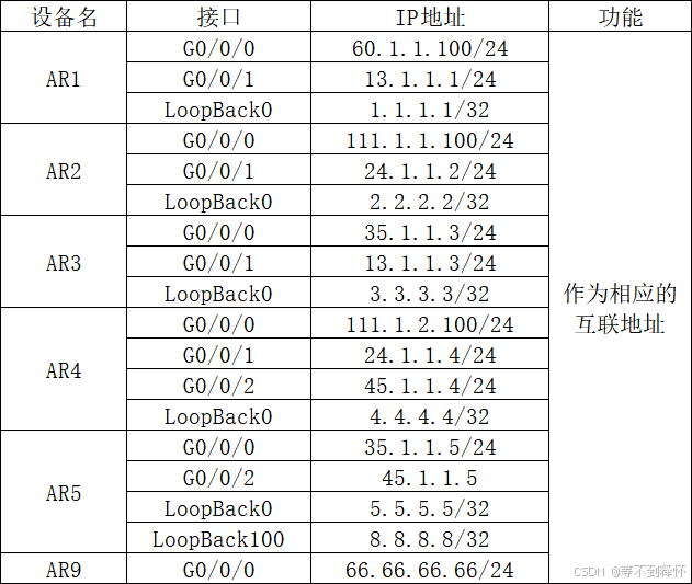 该topo图中防火墙使用的是USG6000V防火墙,topo图就是如下,相应的地址规划表在图中标明了。